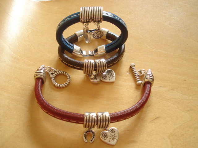 Chegaram os cabedais extra-grossos de 2 tons. Poderão ser utilizados com todas as contas, extra-grossas, aqui expostas.